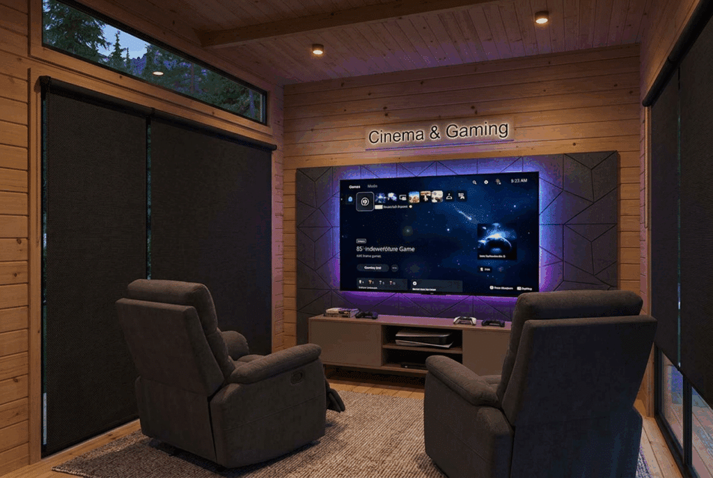 For those prioritising immersive gaming or cinematic experiences, the focus shifts to light control and acoustics. While large windows offer beautiful views, a cinema-focused man cave benefit from contemporary designs where blackout blinds can be seamlessly installed. Positioning furniture against the rear wall and mounting a large screen at the primary focal point creates a professional theatre atmosphere that keeps the rest of the household free from noise.