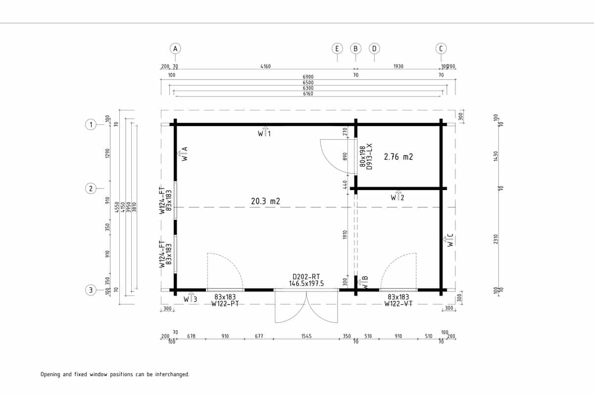 Windows 2 x Opening Tilt and Turn (83 x 183 cm) 2 x Fixed Non-opening (83 x 183 cm)