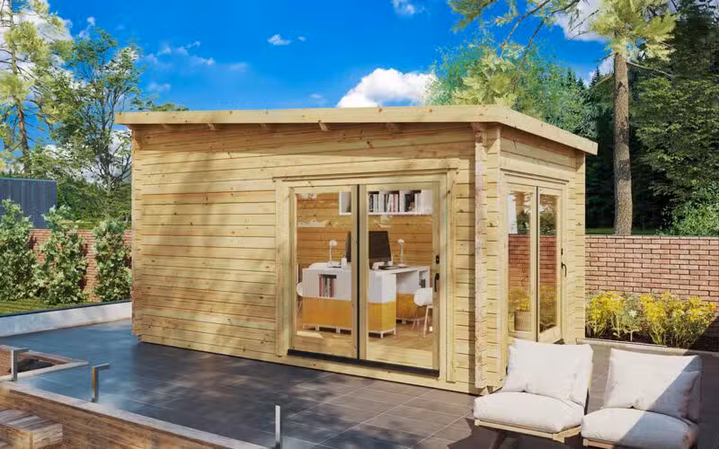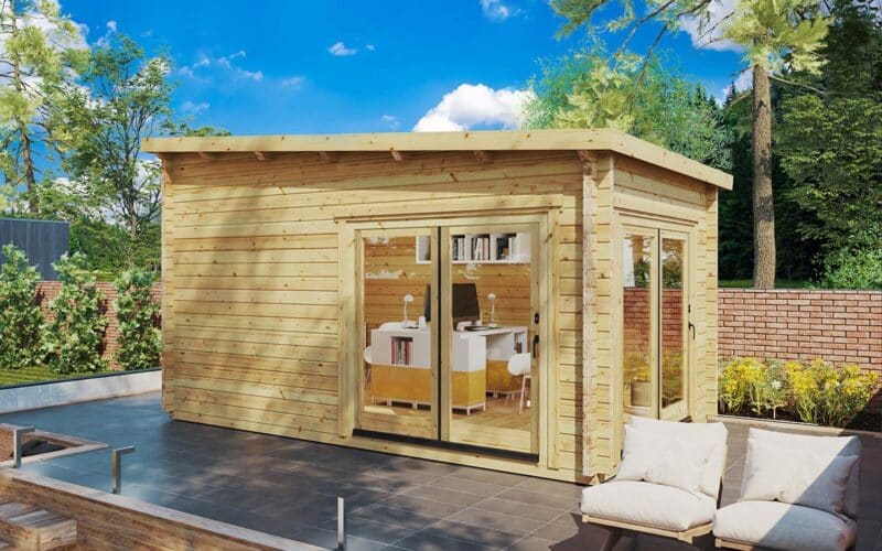 The “Roland 1” is a high-spec, 14 m² garden room featuring dual premium double-glazed sliding doors and robust 70 mm wall logs for superior insulation and structural integrity. This versatile interior provides a professional setting for a home office, private studio, gym, or creative hobby space. Engineered with high-quality German sliding systems, the build includes heavy-duty 28 mm floorboards and 18 mm roof boards for lasting stability. Supported by a pressure-treated foundation frame, the Roland 1 is designed for long-term durability and comfort, offering a bright, modern, and high-end environment for any garden setting.