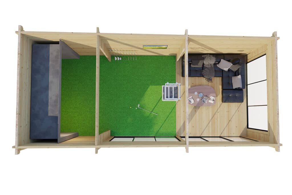 Three wide, double-glazed aluminium sliding doors flood the interior with natural light, offering a sleek architectural finish and a bright, modern atmosphere. Beyond being the ultimate golf sim room, this versatile 33 m² space is perfect for a luxury garden gym, home studio, or table tennis room. Secure, stylish, and built to last, the Ibiza is the premier choice for those looking to buy a premium golf simulator cabin. Elevate your home practice today with this stunning, multi-purpose garden retreat.