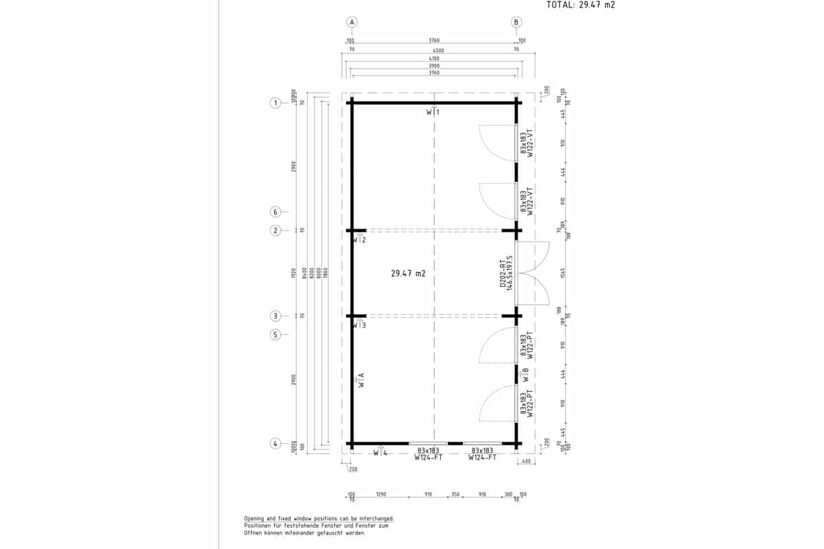 Windows 4 x Opening Tilt and Turn (83 x 183 cm) 2 x Fixed Non-opening (83 x 183 cm)