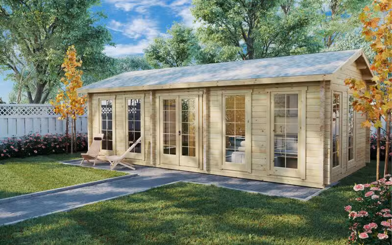 Our standard cabin kits have so many premium features. You can hardly find a garden log cabin with similar quality and premium cabin equipment as our standard summer house sets.