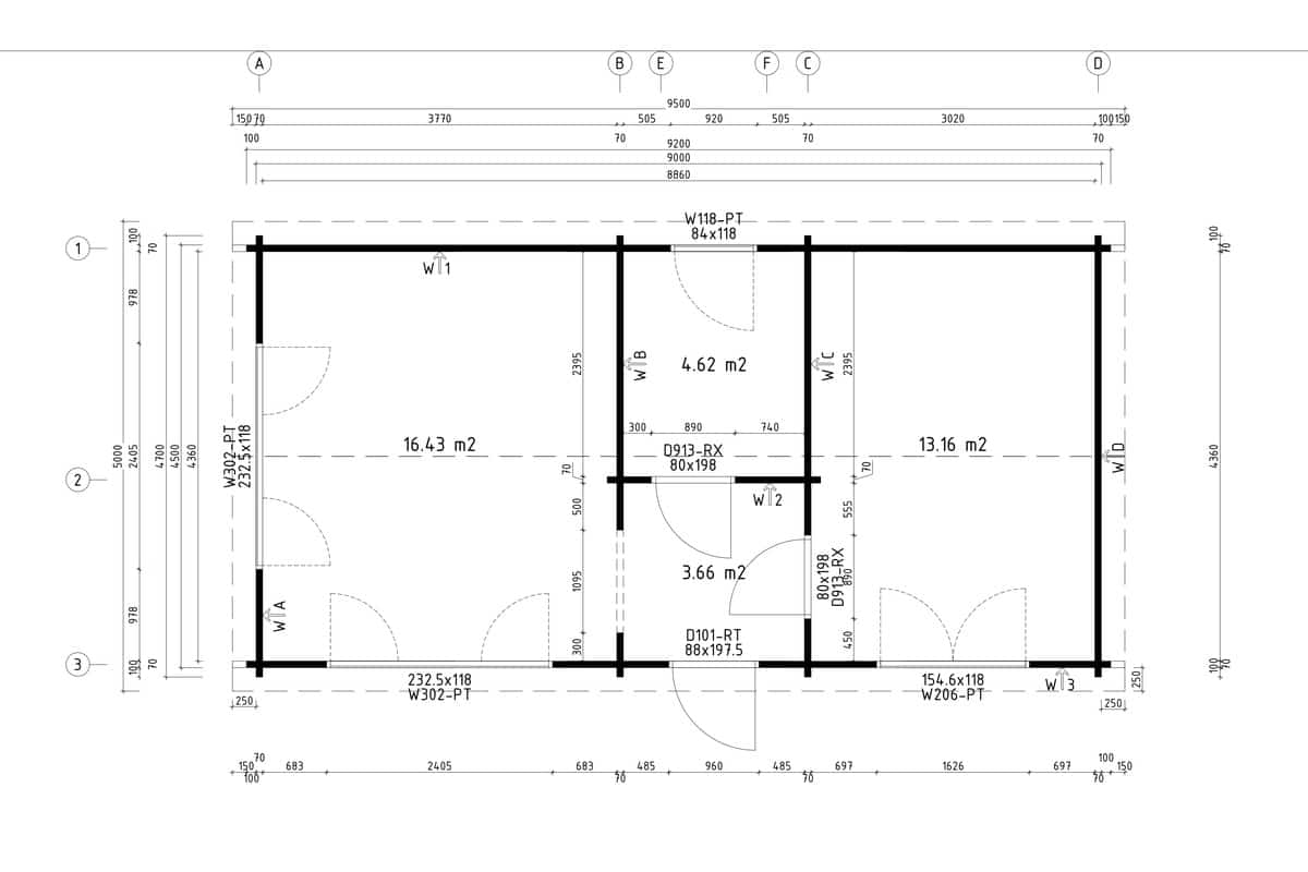 Door size External door 0.9 x 2.08; 2 internal doors 0.8 x 2.08 m