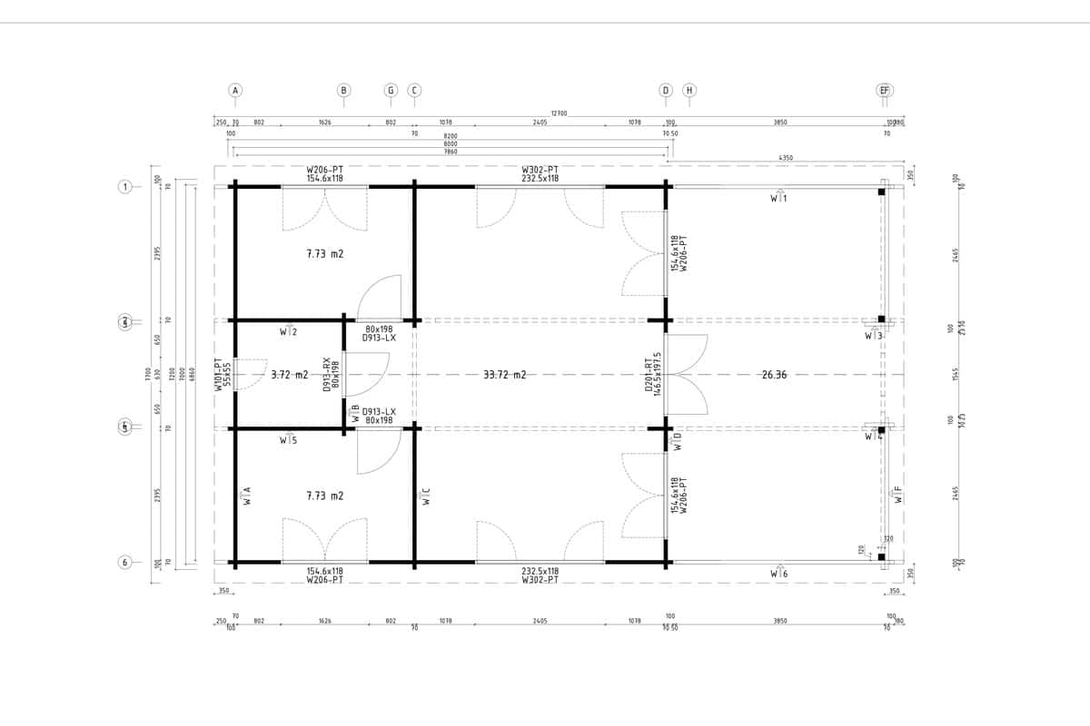 Door size External doors 1.43 x 1.98; 3 internal doors 0.8 x 1.98 m